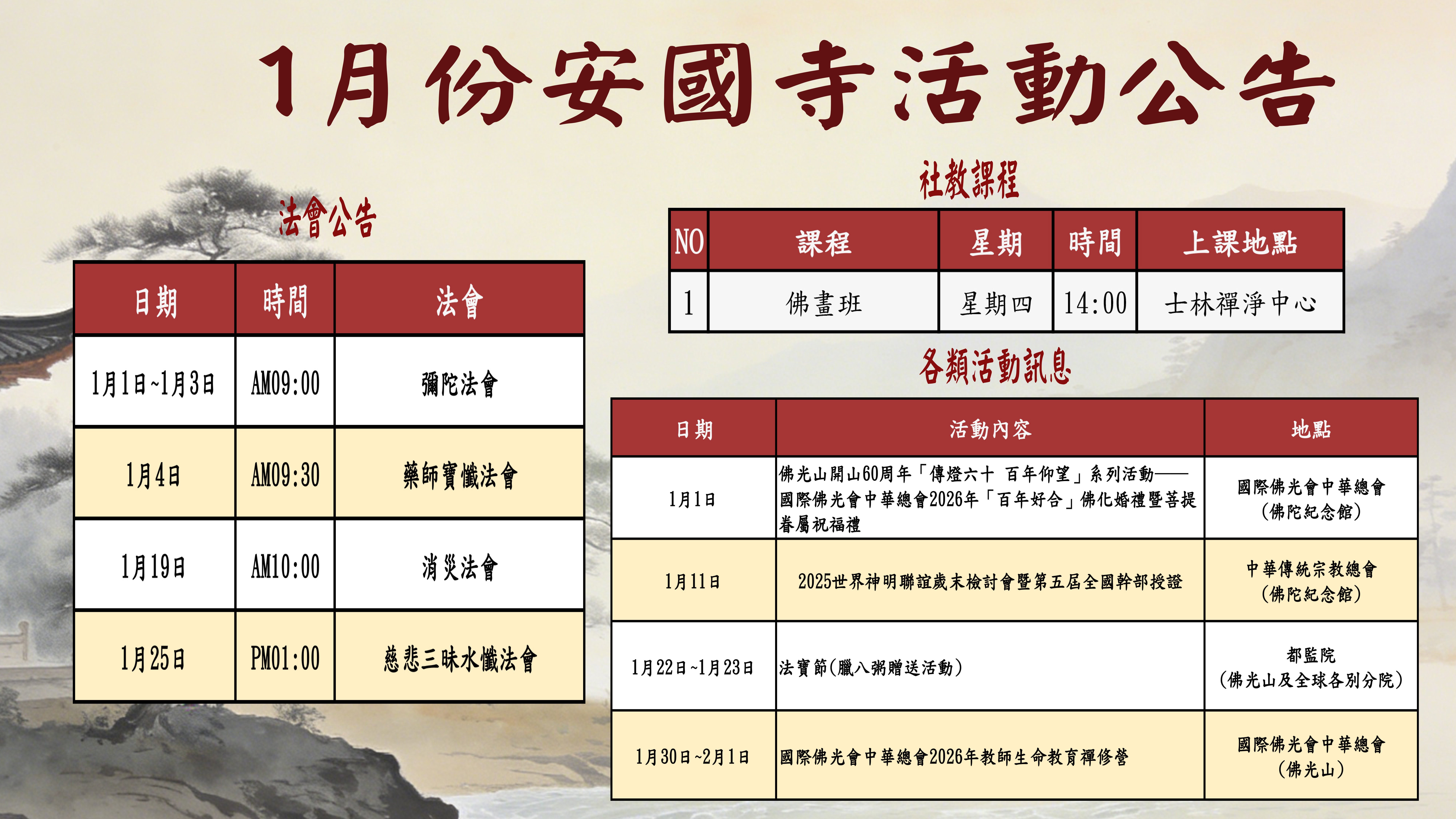 1月份活動公告