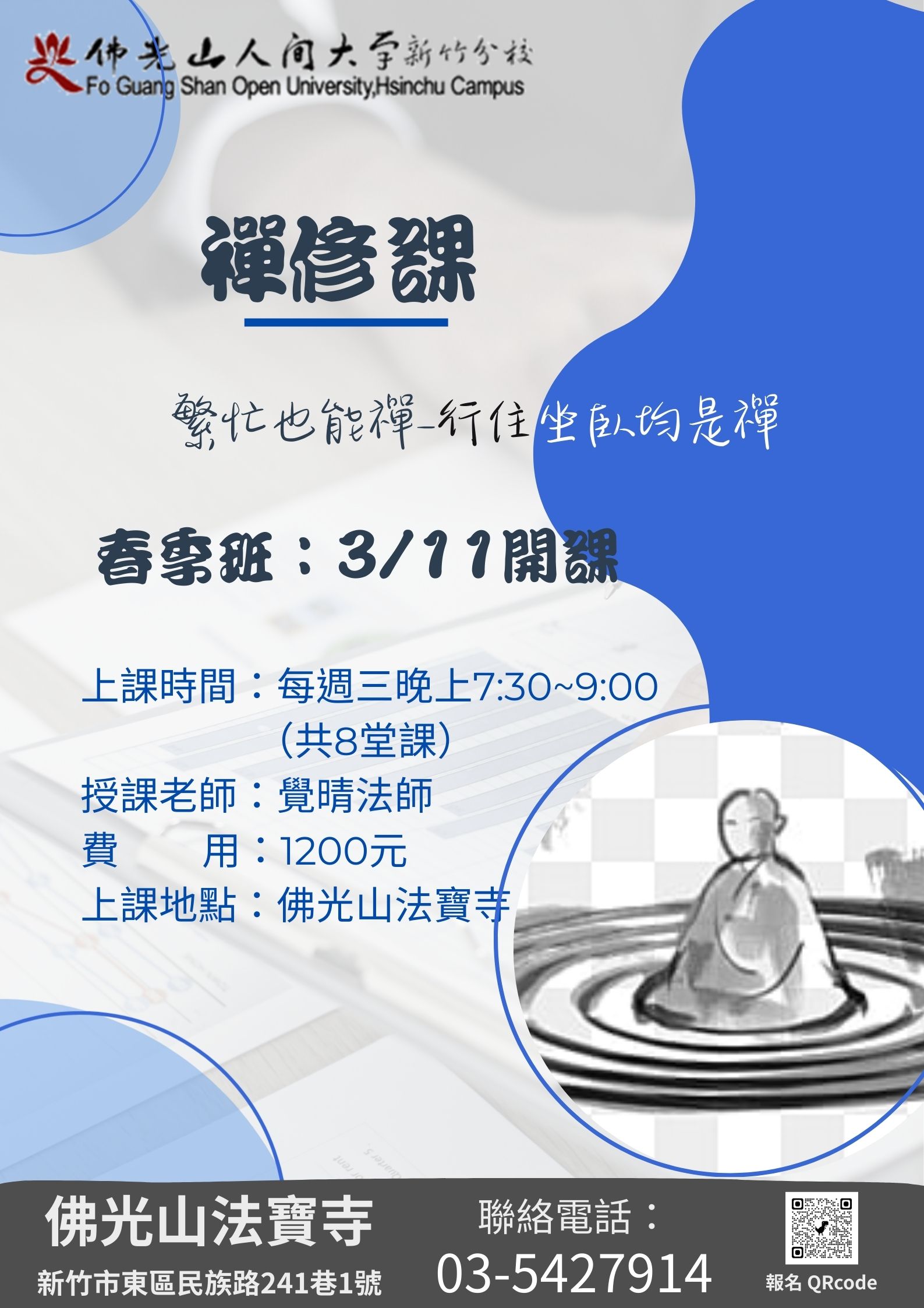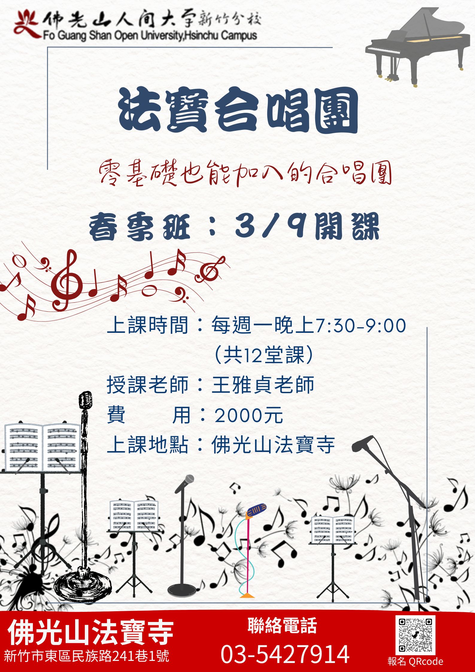 最新活動首頁了解更多最新活動 2025/12/08 posted2026.1~3月行事曆2025/10/19 posted秋季班-50+學堂2025.11.6開課2025/06/09 posted秋季班-生活品茶趣-初階班2025.12.3開課2025/06/09 posted秋季班-二胡班2025.9.12開課2025/06/09 posted秋季班-達摩易筋經2025.11.10開課2026/01/01 posted春季班-佛學名相2026.3.16開課2026/01/01 posted春季班-禪修班2026.3.11開課2026/01/01 posted春季班-百法明門論2026.3.12開課2026/01/01 posted春季班-八識規矩頌2026.3.12開課2026/01/01 posted春季班-法寶合唱團2026.3.9開課2026/01/01 posted春季班-法寶青少年合唱團2026.3.10開課2025/12/06 posted2026.1.11與佛香遇-手作香2025/12/02 posted2026.1.29-1.31FUN寒假-無人機體驗營2025/12/02 posted2026年度光明燈&智慧燈歡迎報名2025/10/29 posted冬季班~正念瑜珈2025.11.26開課2025/10/21 posted秋季班-法寶青少年合唱團2025.11.3開課2025/10/19 posted秋季班-佛學名相2025.11.12開課2025/08/03 posted秋季班-幸福法寶50+學堂2025.11.6開課2025/06/09 posted秋季班-小原流花藝班2025.10.31開課2025/06/09 posted秋季班-法寶合唱團2025.11.3開課 回首頁