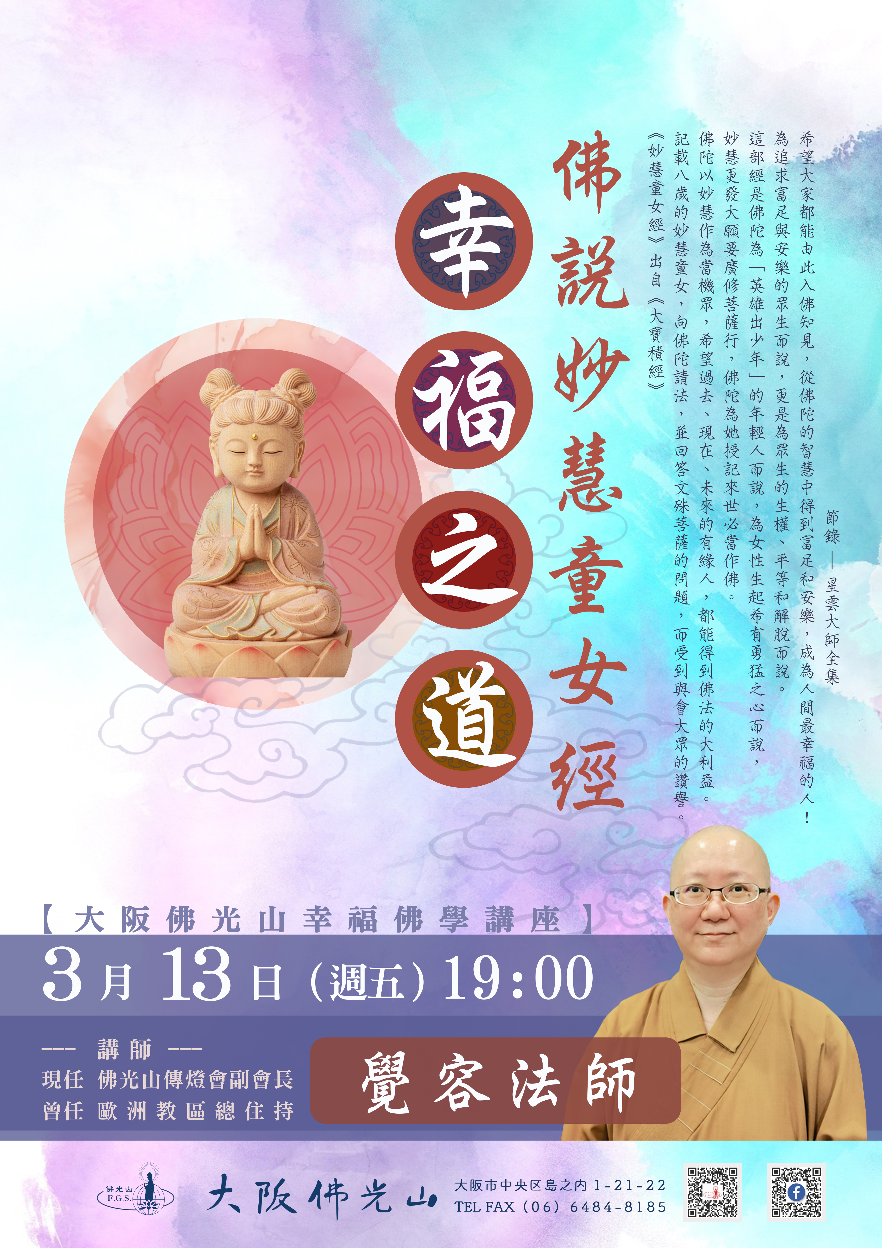 最新活動首頁了解更多最新活動 2025/12/12 posted《浩瀚星雲》音樂劇2026/03/06 posted覺容法師佛學講座 《佛說妙惠童女經》幸福之道2025/12/12 posted2026菩提眷屬祝福禮2025/12/12 posted2026.1-3月行事曆2025/10/07 posted10-12月 行事曆2025/07/28 posted0809台灣超人電影鑑賞會2025/07/01 posted煩惱整理學2025/06/26 posted7-9月 行事曆2025/06/26 posted0831人間生活禪2025/03/11 posted開心鉛筆素描班2025/03/11 posted2025 四月~六月行事曆2025/03/11 posted慧傳法師佛學講座2025/03/11 posted2025 大阪佛光山寺幸福安樂佛學講座 三月份2024/12/31 posted2025 元月~三月行事曆2025/01/01 posted2025致護法朋友的一封一信2024/12/09 posted2025大阪佛光山寺幸福安樂講座2024/02/23 posted2024大阪佛光山寺行事曆2024/02/24 posted【佛光山開山祖師星雲大師圓寂周年紀念日】追思系列活動2024/02/21 posted2024 三日禪修道會2024/02/20 posted2024大阪佛光山寺抄經會2024/02/20 posted2024大阪佛光山寺禪修會2024/02/21 posted初級梵唄法器班招生中2020/12/03 posted2021年度佛光兒童「漢傳文化輕鬆學」課程開始報名啦2020/06/24 posted7/12臨床健康講座2020/06/24 posted【募集中】料理教室2019/12/13 posted佛光儿童班2019/12/13 posted中國語教室 回首頁