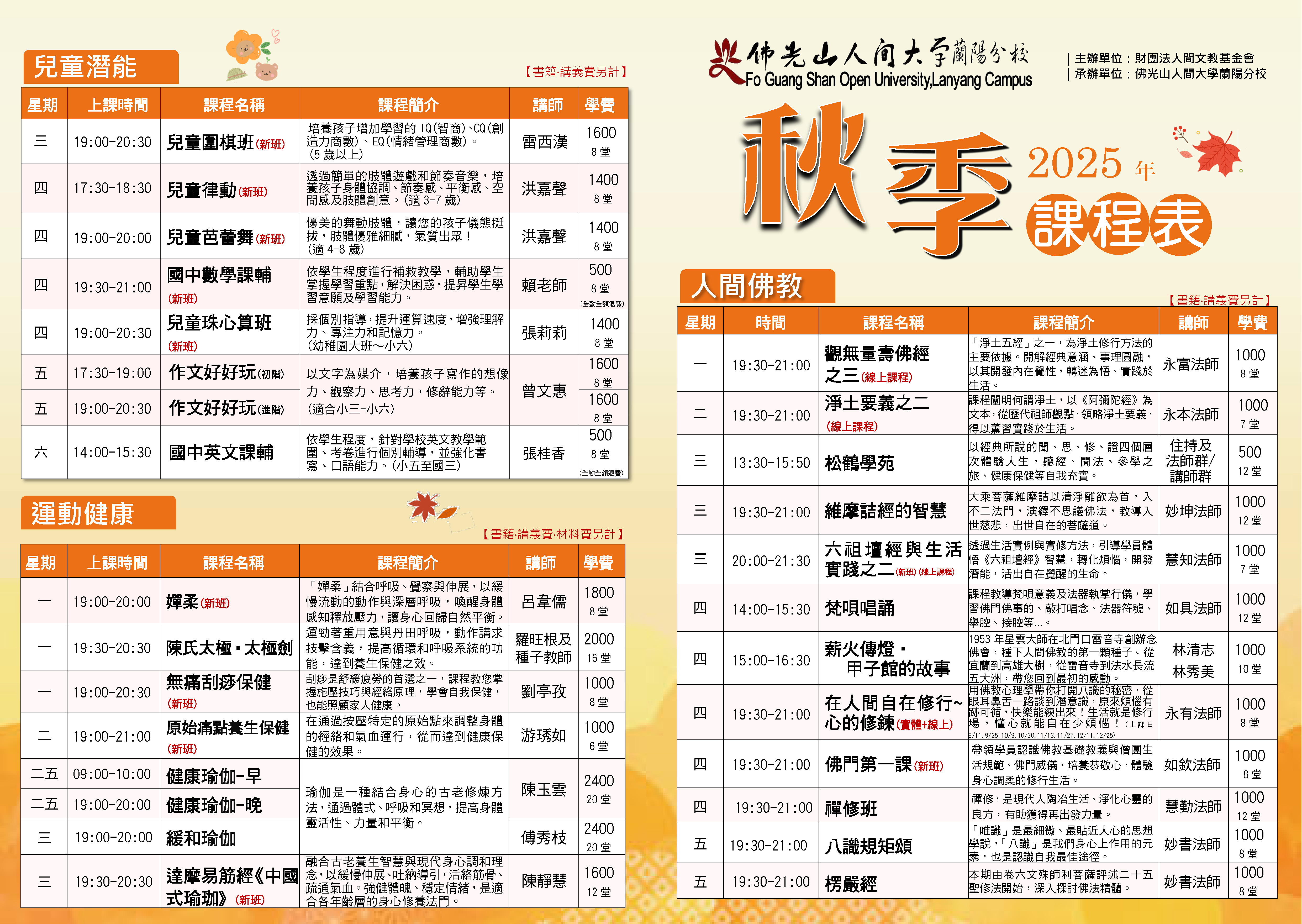 🌟 人間佛教|🌸 人文藝術|🤸♀️ 運動健康|👧 兒童潛能|🎯 社團活動