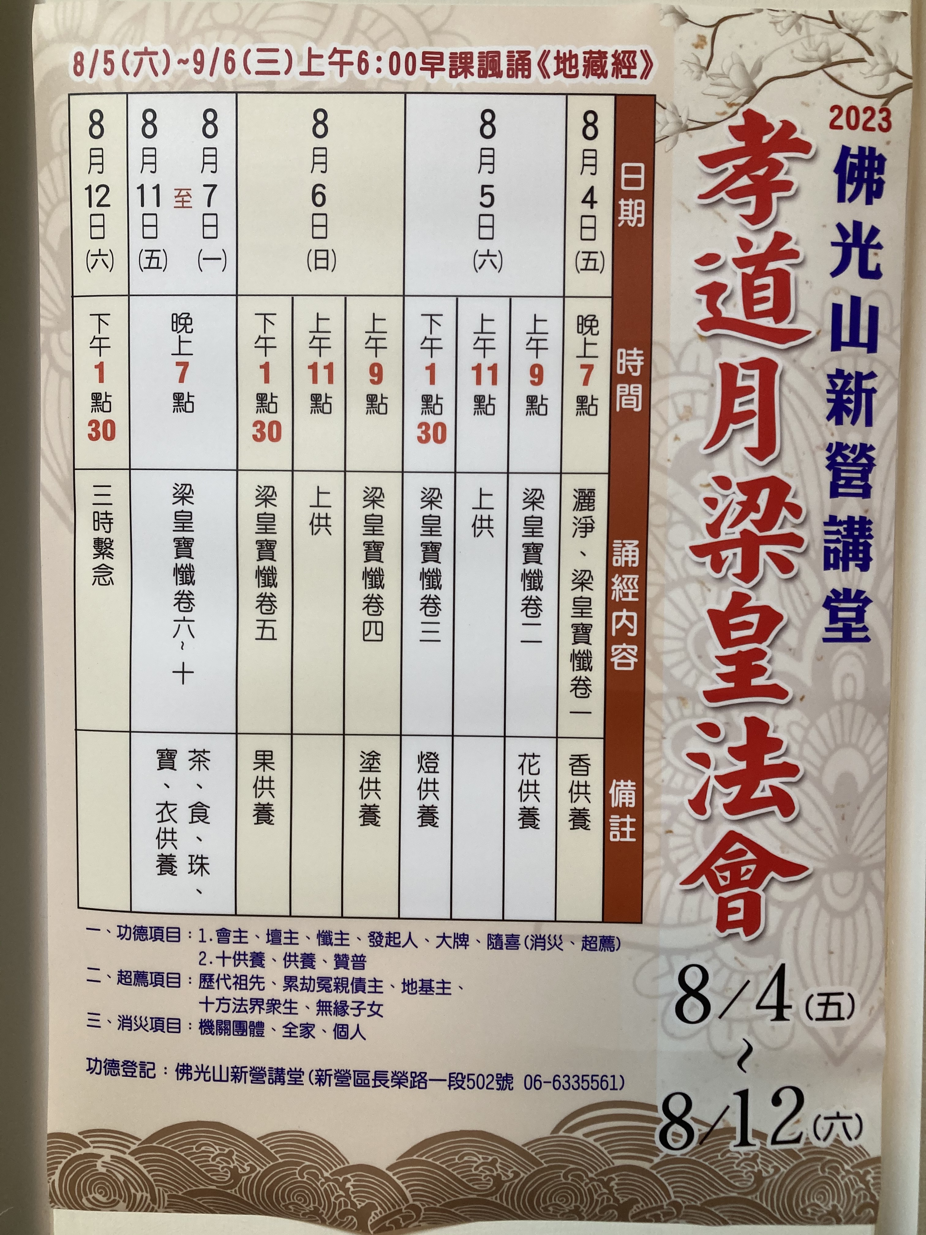 活動回顧首頁活動訊息近期活動活動回顧 回顧年表: 2025202420232022 2023/12/31 posted【每日一富】 如何面對順逆境~2023/12/31 posted被人利用2023/12/19 posted新營講堂分享【每日一富】 ~心要靜,方能看清楚人事物本質~2023/12/18 posted【每日一富】 ~頭面接足禮~2023/12/17 posted新營講堂分享【每日一富】2023/10/27 posted人間福報-把握因緣2023/05/31 posted新營講堂梁皇法會2023/04/27 posted新營講堂人間福報三時繫念法會 PM13:30 12