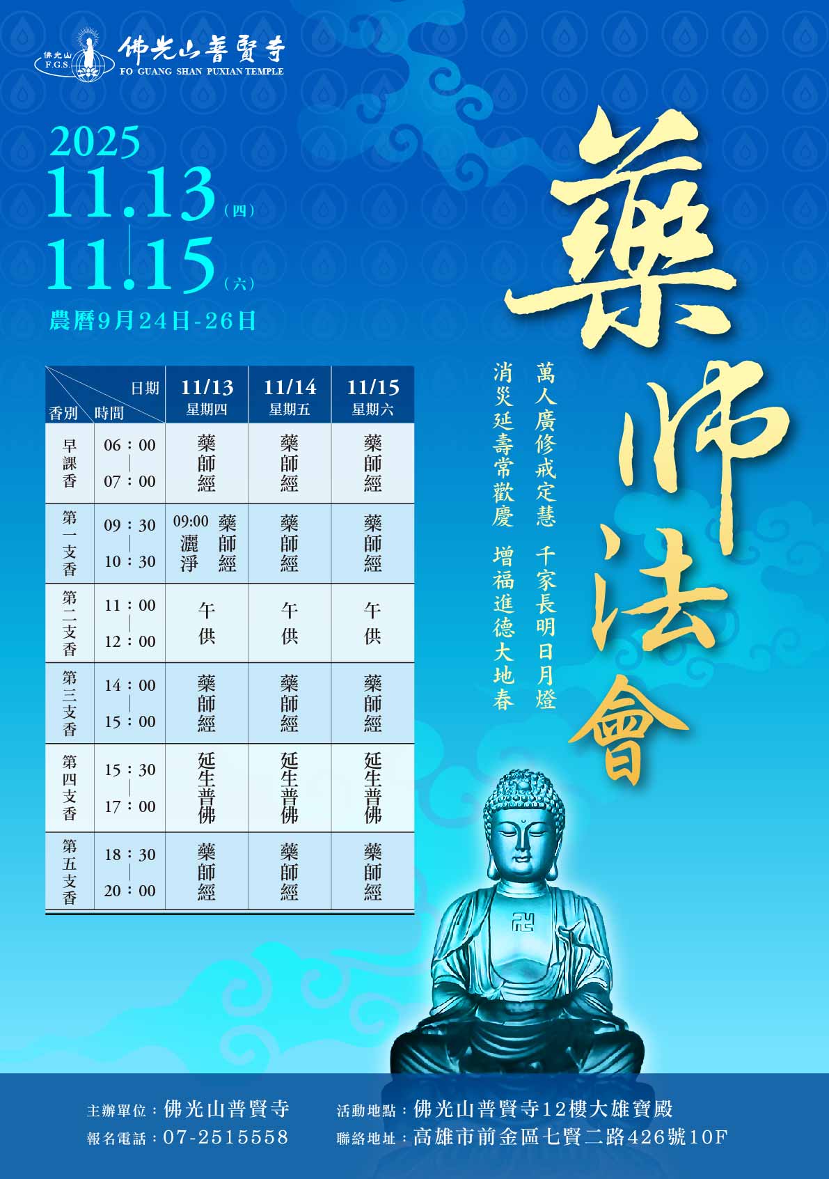 普賢寺2025年藥師法會11/13(四)~11/15(六)