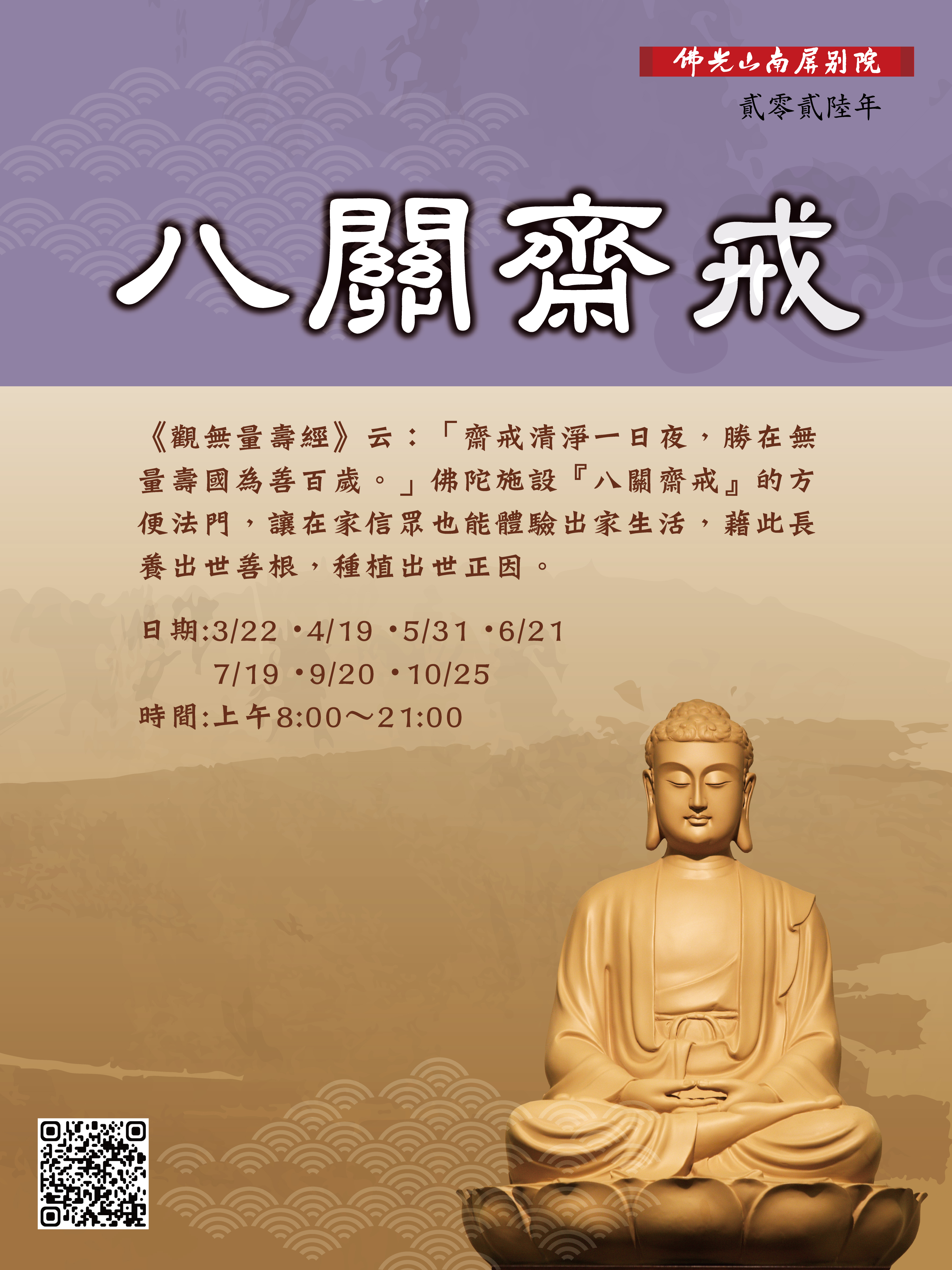 法會訊息首頁了解更多法會訊息 2026/01/15 posted八關齋戒2026/01/16 posted慈悲三昧水懺法會2020/02/14 posted報恩法會2020/02/14 posted光明燈法會2020/02/13 posted共修法會2020/02/14 posted法華法會2026/01/16 posted【2026新春供佛齋天法會】2/24(初八)-2/25(初九)2026/01/15 posted【新春大悲懺法會】🌟2/20(初四) - 2/21(初五) 12