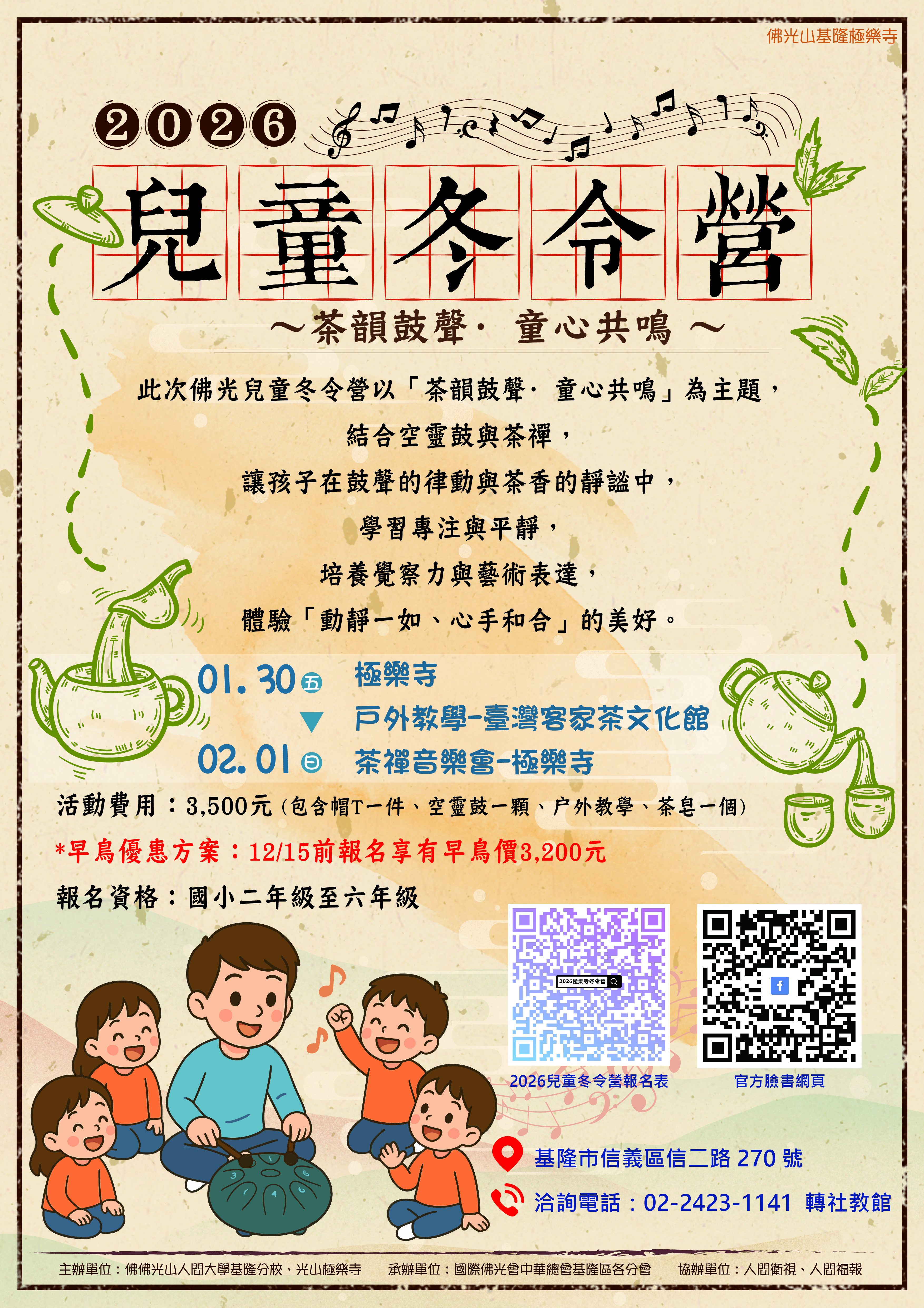 活動訊息:【極樂寺】兒童冬令營 ~ 「茶韻鼓聲·童心共鳴」