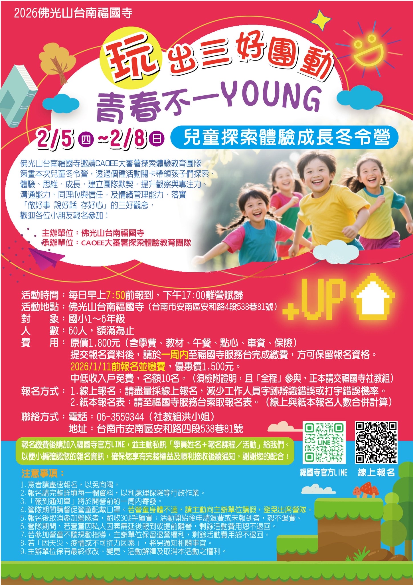 活動訊息:【福國寺】玩」出三好團動青春不一YOUNG 2026兒童探索體驗成長冬令營