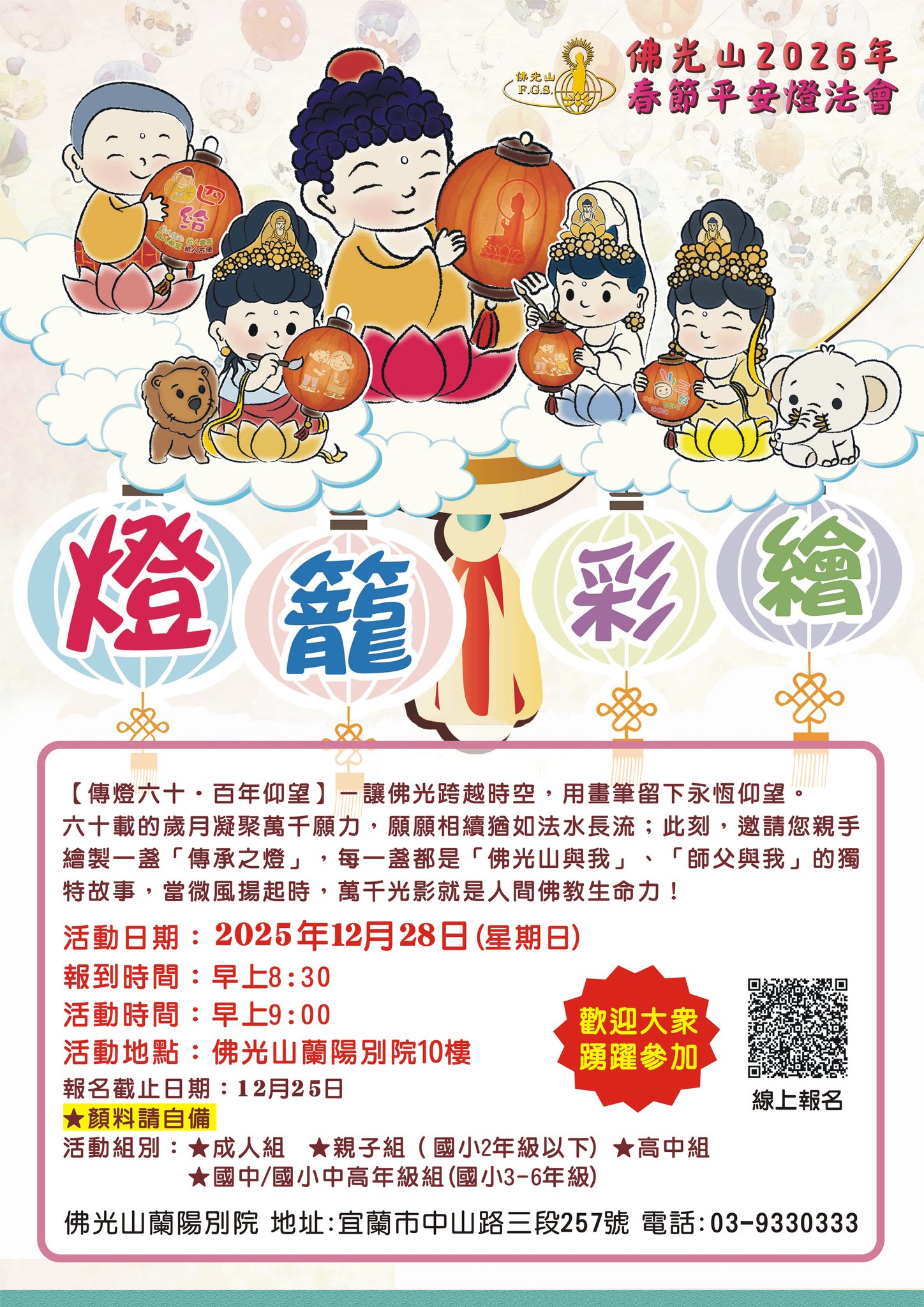 活動訊息:【蘭陽別院】佛光山2026年燈籠彩繪活動