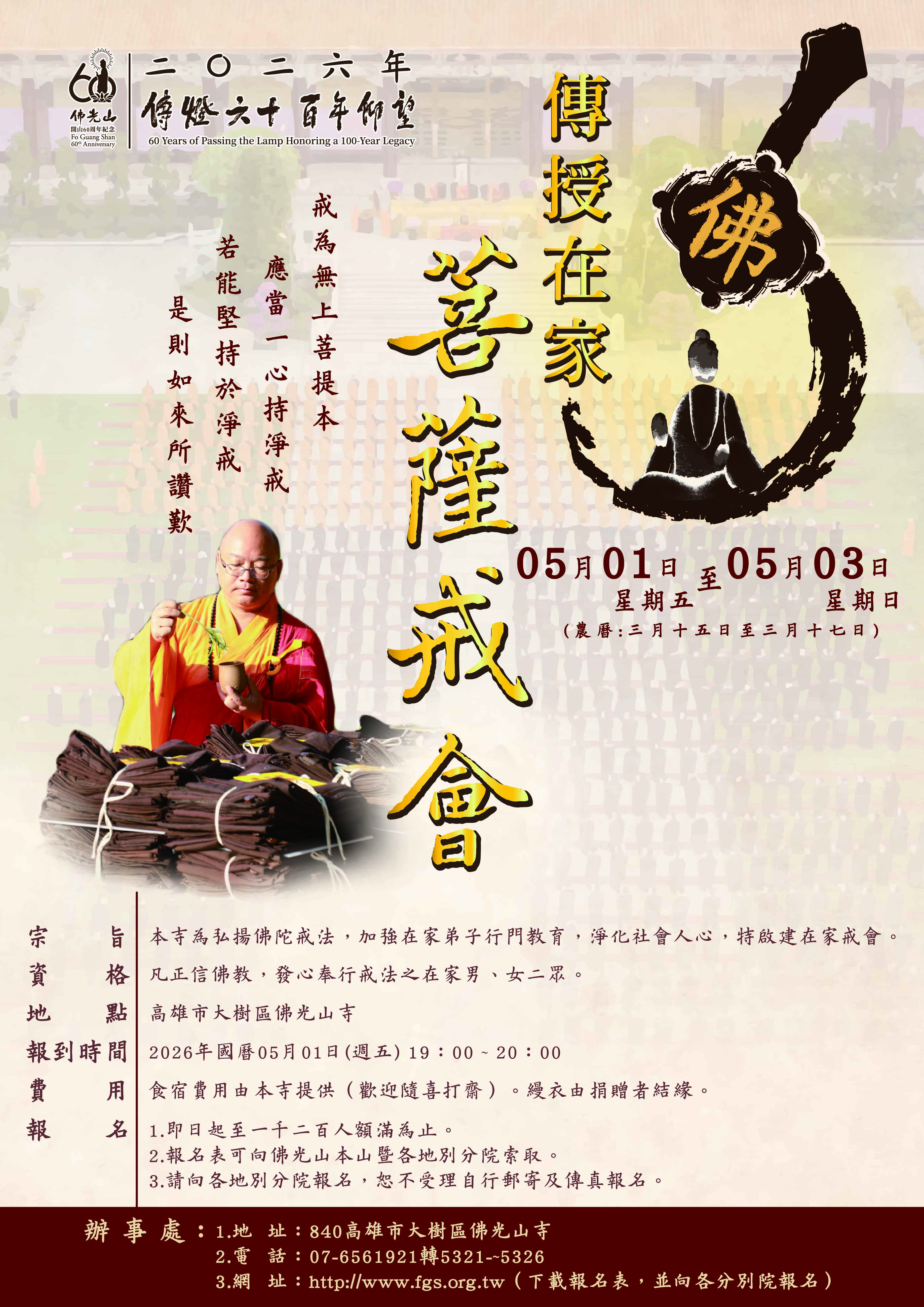 菩薩戒:二○二六年國曆五月一日(週五)至 五月三日(週日)