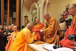 【人間社記者陳昭良 大樹報導】佛光山2013年供僧法會暨剃度傳法大典,8月28日在佛光山如來殿大會堂舉行,由佛光山開山宗長星雲大師親自傳授人間佛教教法予靈鷲山佛教教團創辦人心道法師及新加坡、香港、台灣等海內、外69位法師,成為臨濟宗第49代、佛光山第二代法子,由佛教界友寺法師、佛光會員信眾共同見證,佛光山法脈長流、薪火相傳的重要歷史時刻!