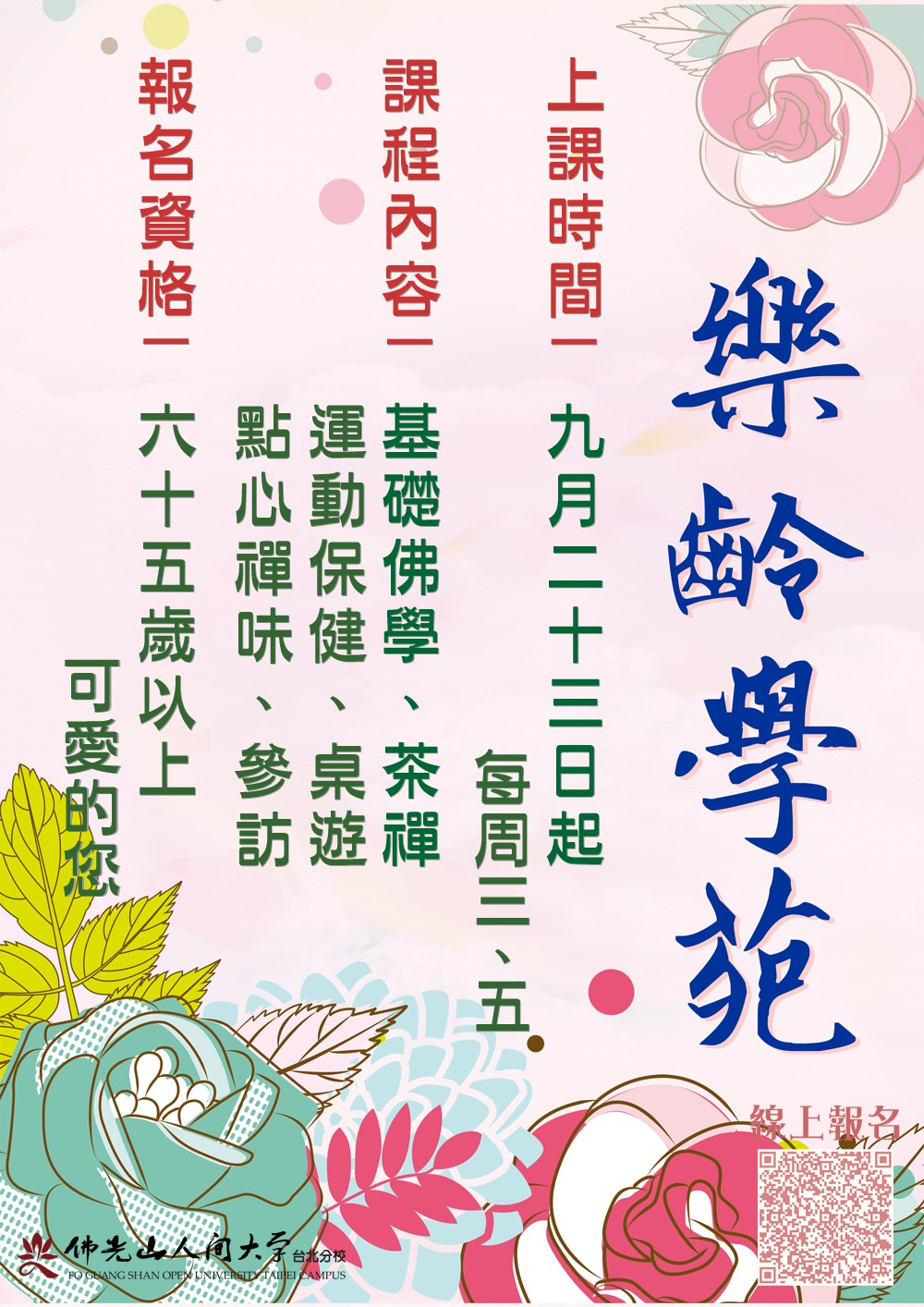 課程回顧 首頁 人間大學近期課程課程回顧 回顧年表: 2025202420232022202120202019 2020/08/30 posted2020秋季課程 ✨棉紙撕畫2020/08/30 posted2020秋季課程🌱人間佛教系列 經典研究《華嚴經》2020/08/26 posted2020秋季班準備開課囉🎉2020/08/06 posted台北道場🌸【樂齡學苑】2020/08/04 posted【佛光山短期出家修道會─清淨七重奏(三)】2020/08/02 posted台北道場🌟【善童學園】2020/08/02 posted台北道場👌【台北佛光童軍團】2020/07/31 posted台北道場🌟【佛光小菩薩學堂】 23456789